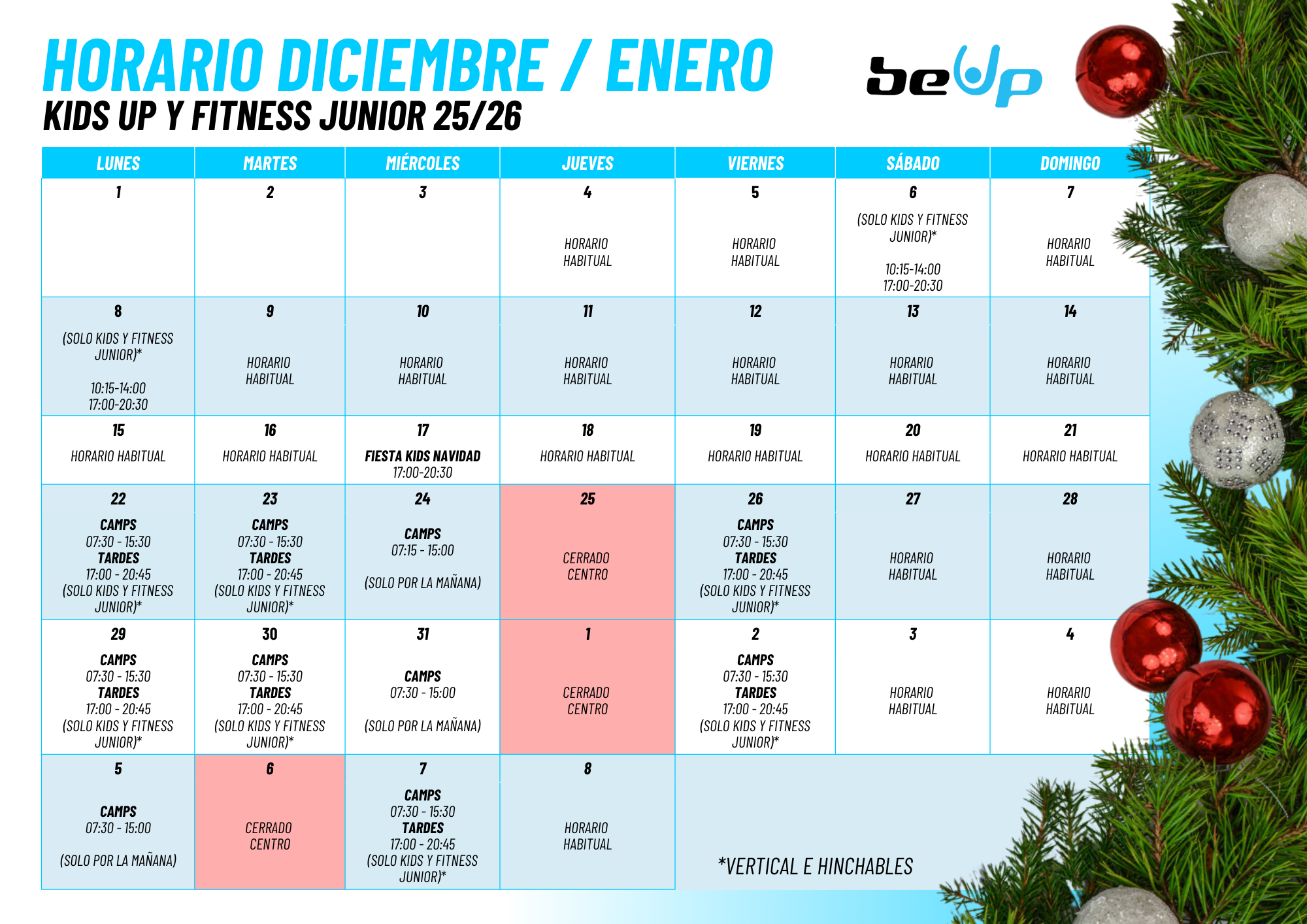 | Lunes 01/12 | Martes 02/12 | Miércoles 03/12 | Jueves 04/12 | Viernes 28/11 | |